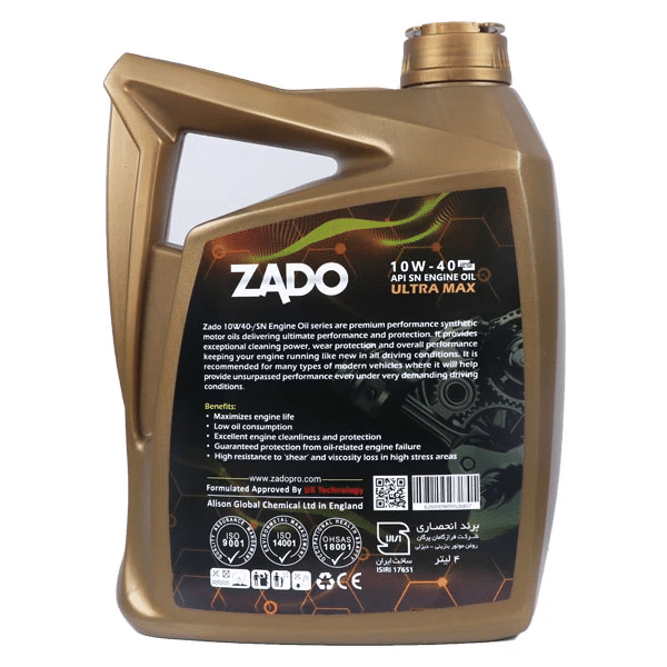 روغن موتور الترا مکس 4 لیتری SN 10W‑40 (ZADO ) یکی از برندهای معتبر روانکار در ایران است که با تکنولوژی روز دنیا محصولاتش را طراحی و عرضه میکند.